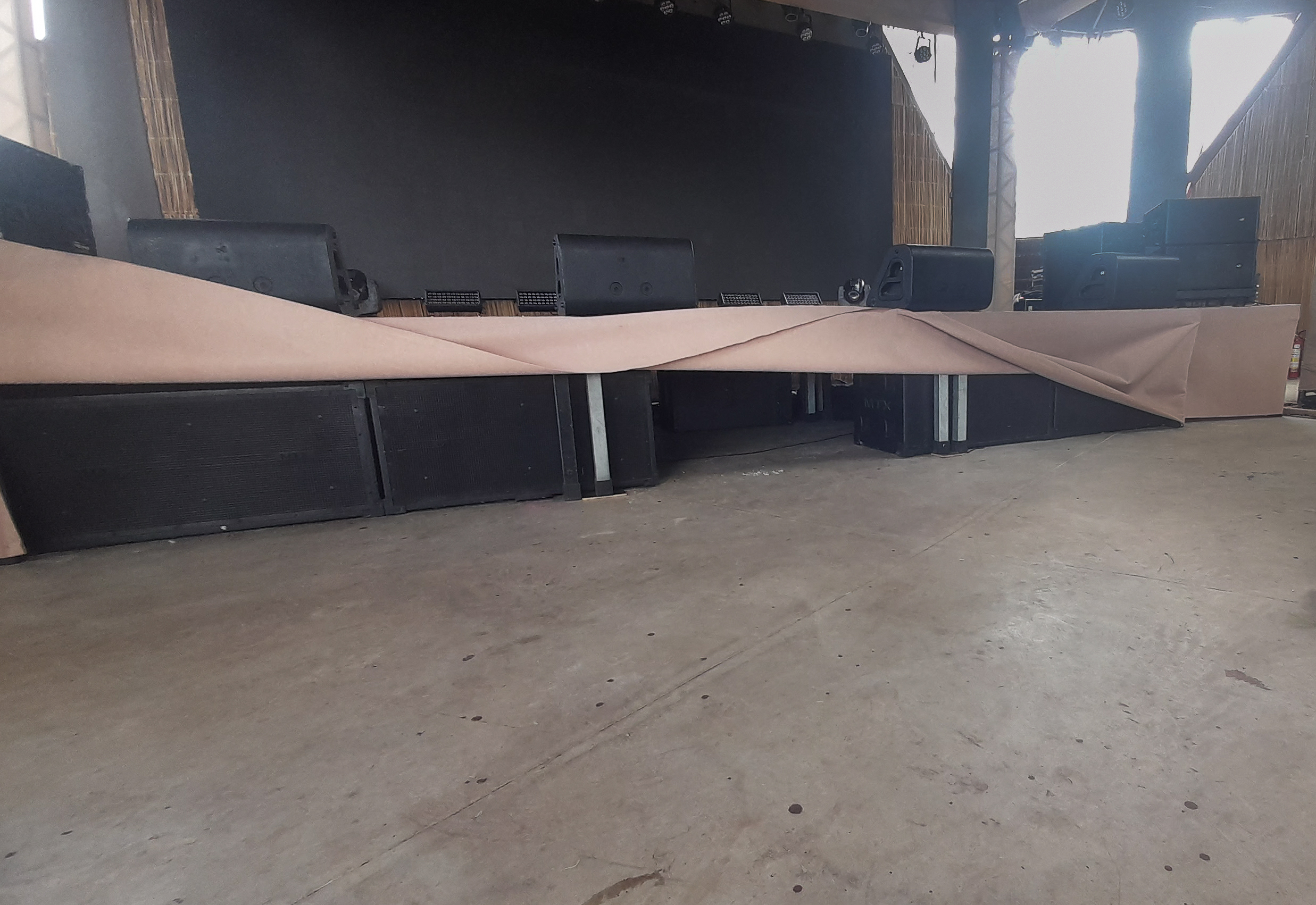As caixas de subwoofer, sempre que possível são escondidas em algum lugar próximo a pista de dança.